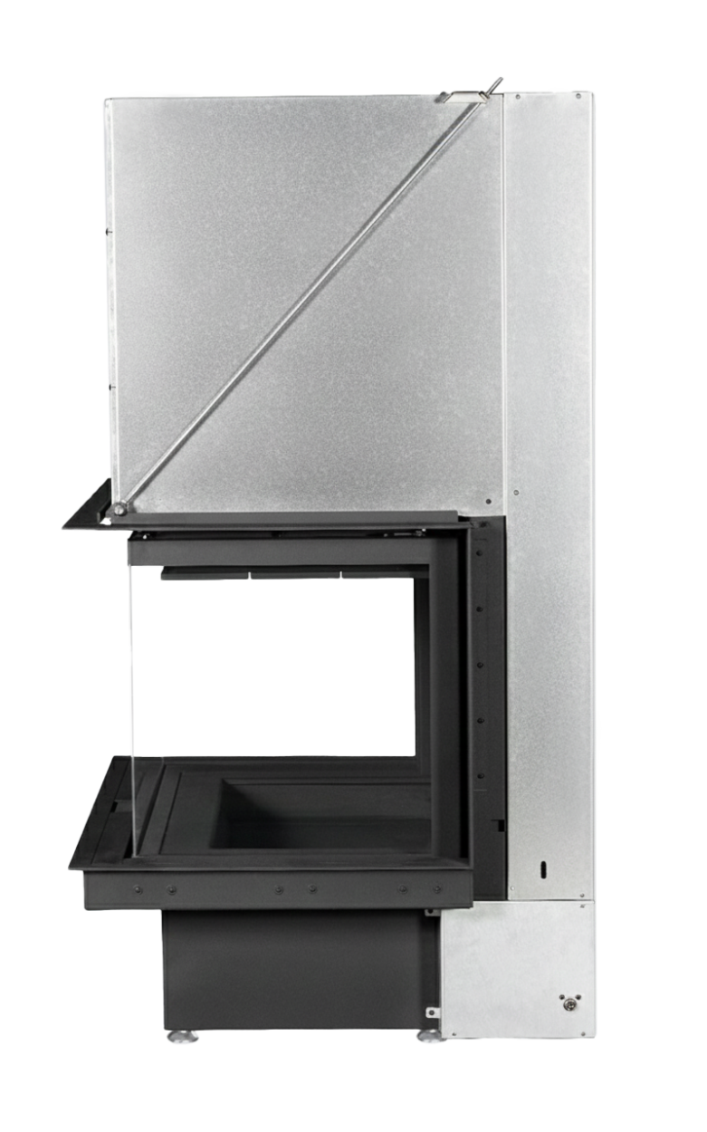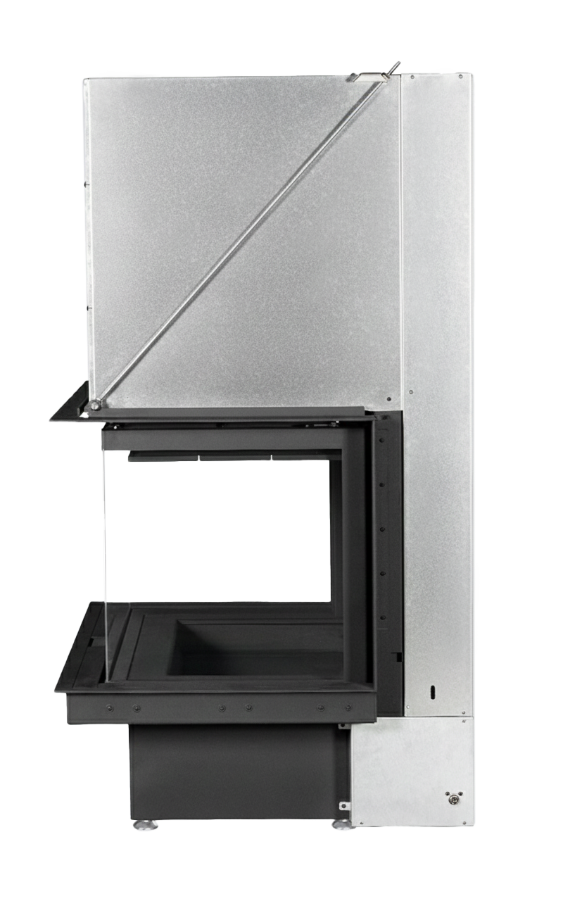 Большое стекло открывает практически панорамный обзор огня. Мощная топка для каминного зала коттеджа или особняка.