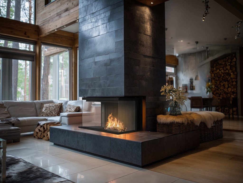Камин с такой топкой великолепно впишется в каминный зал особняка. Незабываемый панорамный обзор пламени из любой части помещения.