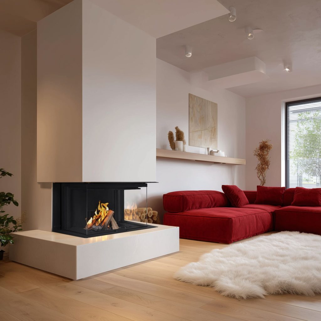 Топка три стекла станет композиционным центром даря тепло, уют и незабываемую игру огня.